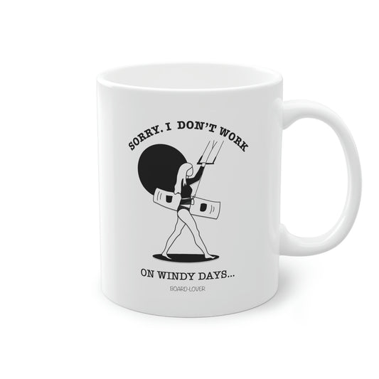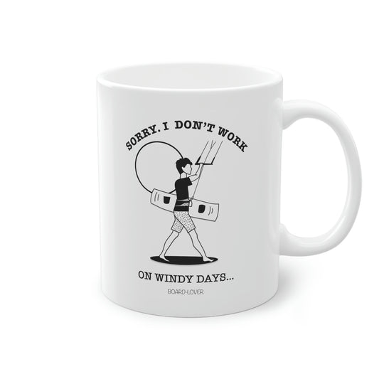 Sorry. I don`t work on windy days. Schwarz-weiß Tasse. Mann 0,33L