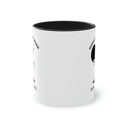 Sorry. I don`t work on windy days. Schwarz-weiß Tasse. Farbiger Henkel und Innenseite – 0,33L